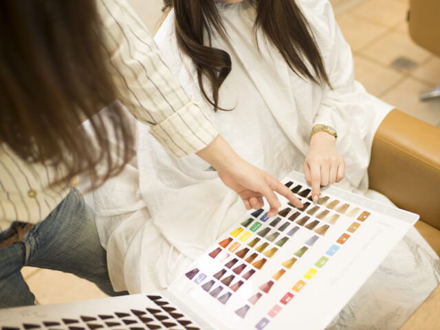 高級カラー剤を用いて、ヘアカラーしてまいります。